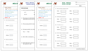 View AllMeasures of central tendency in statistics include mean, median, mode, range, and quartiles. Separate worksheets with detailed solved examples on each topic are given for practice. Concept based word problems are included.