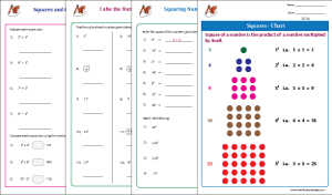 View AllWorksheets on squares and cubes of numbers can be used along with multiplication worksheets as multiplication is the operation involved to find the squares and cubes of numbers. A number multiplied by itself is square and a number multiplied thrice by itself is the cube.