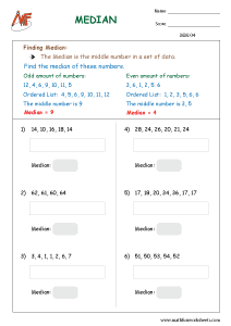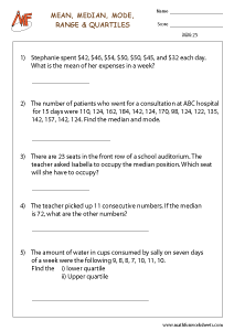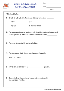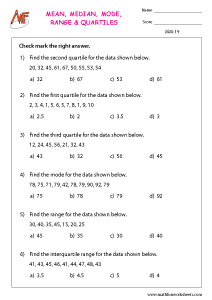 The beginning of statistics is to know the measures of central tendency and variability. At once, we will relate measure of center and variability over a range of data called the data distribution. These worksheets on mean, median, mode, range, and quartiles make you recognize the measure of center for a set of data.